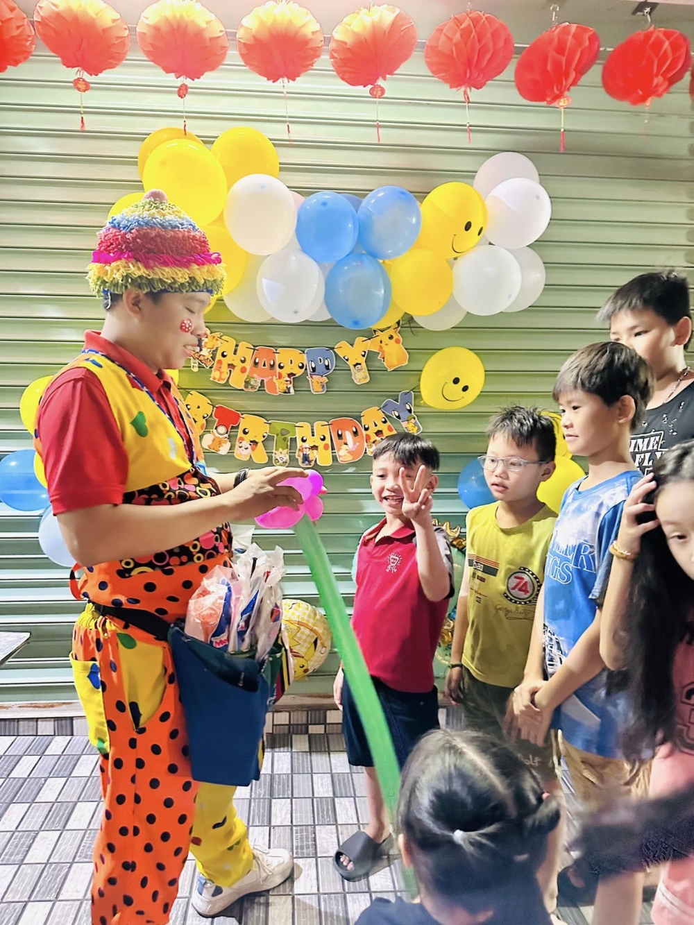 Những chú hề bong bóng không chỉ tạo hình bong bóng mà còn biết cách trò chuyện, làm trò cho các bé, mang lại không khí sinh động và vui tươi cho bữa tiệc.